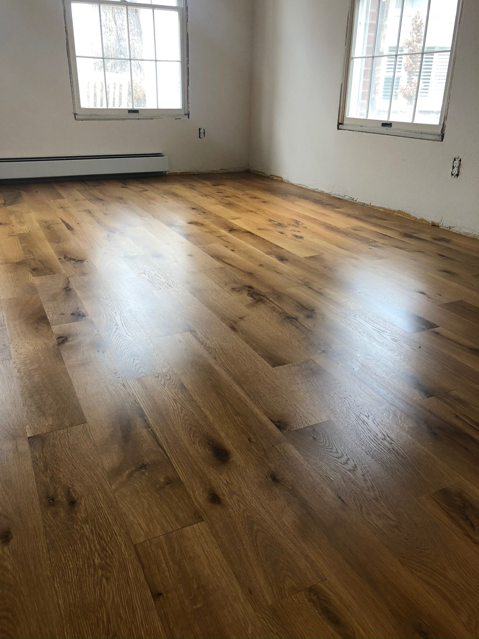 Our hardwax oil finishes enhance the natural beauty of hardwood while providing a durable, breathable, and low-sheen protective layer. This finish penetrates deep into the wood, providing a rich, organic look while allowing for easy spot repairs. It is ideal for those who prefer a warm, natural aesthetic with a softer feel underfoot. It requires periodic maintenance to keep it looking fresh.